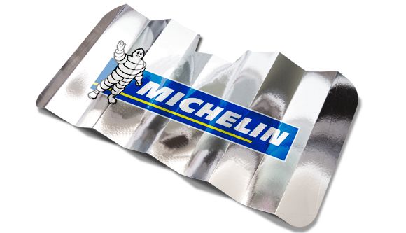 Revêtu d’un film en aluminium réfléchissant sur le recto et en carton blanc écologique de 500 gr/m2 sur le revers, ce pare-soleil en alu minium, le Maxi Métallisé est un pare-soleil de voiture pour le pare-brise avant. Il permet l’impression de textes, logotypes et dessins en 1-4 couleurs directes (PANTONE).