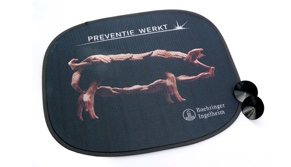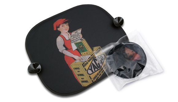 DescriptionLe pare-soleil publicitaire Textil est fabriqué en nylon noir translucide, avec un cercle en acier permettant un pliage circulaire. Il s’accroche à la vitre grâce à deux ventouses.